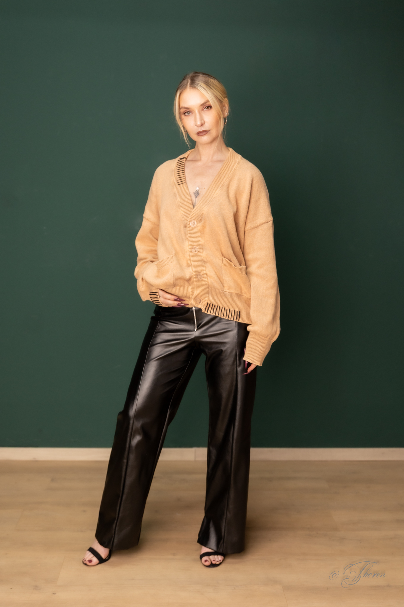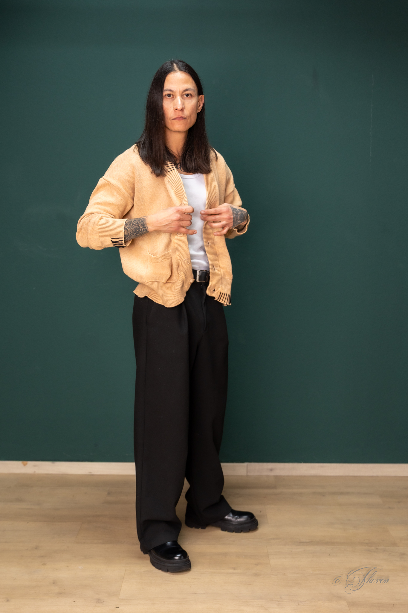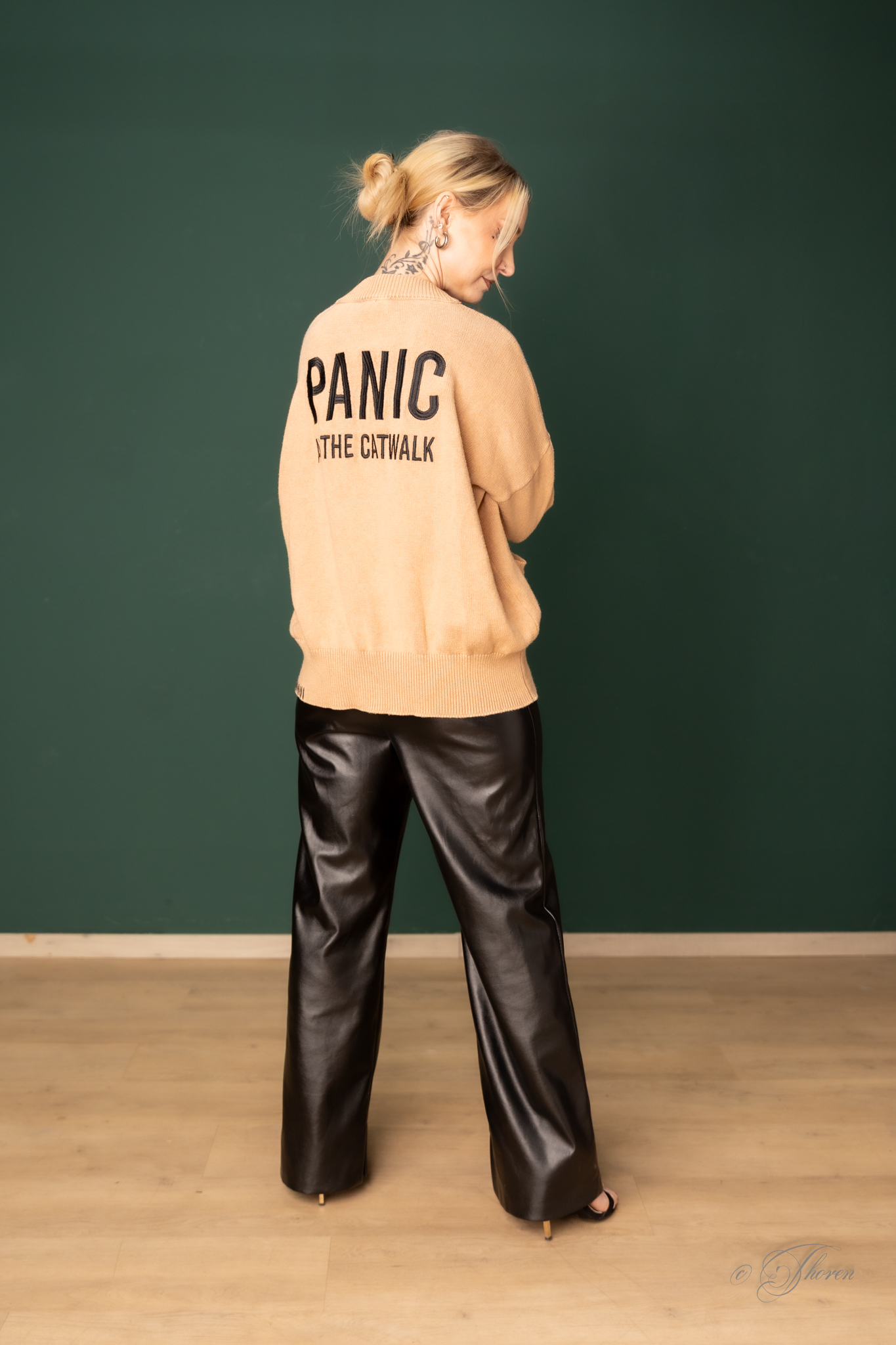 Unisex Cardigan mit PANIC AT THE CATWALK -Stickerei auf dem Rücken und Handstickerei an Saumkanten